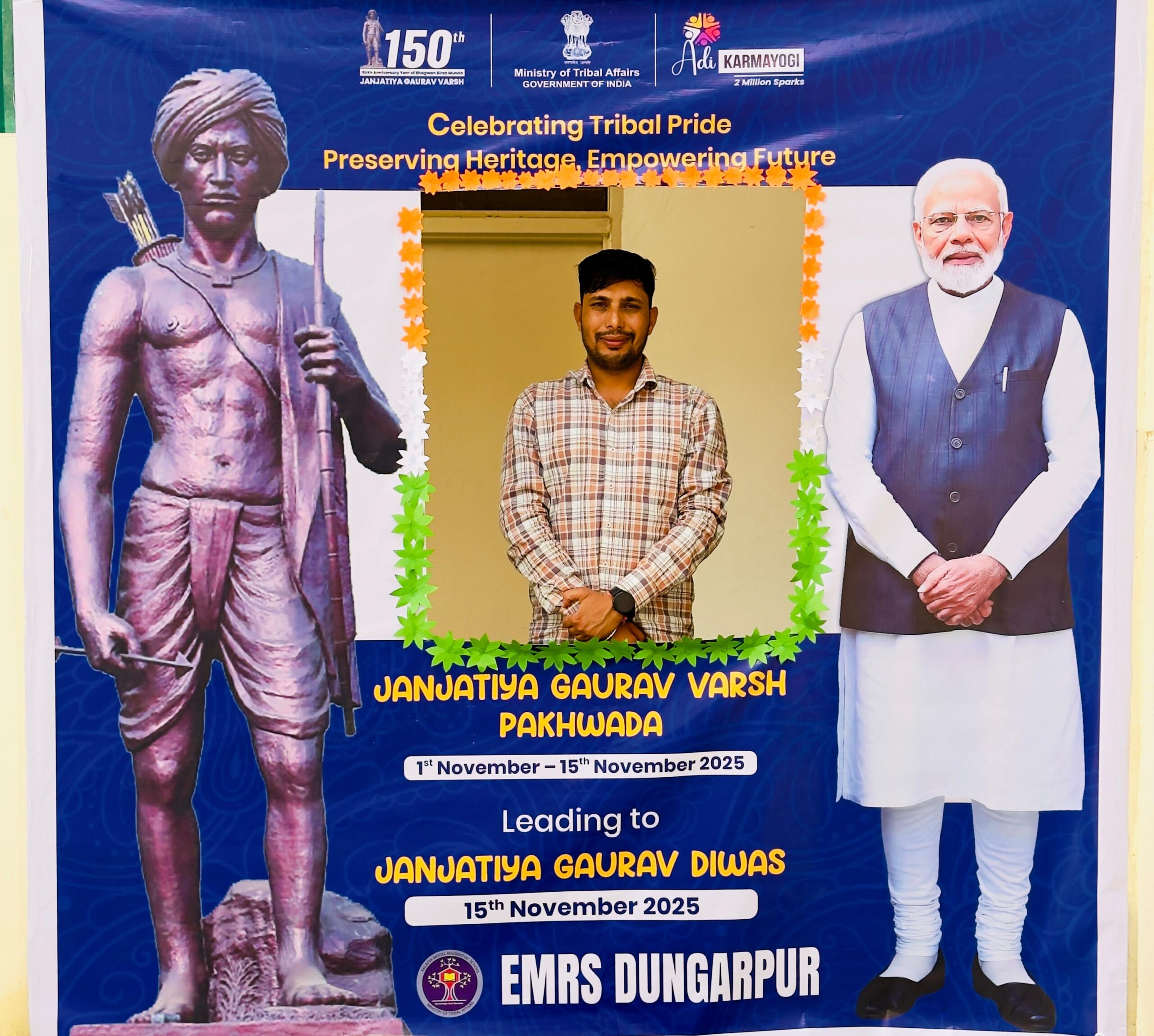 On the occasion of Tribal Pride Day, to celebrate the 150th birth anniversary of Dharti Aaba Bhagwan Birsa Munda, on 15th November 2025, the illustrious Honorable Chief Minister of Rajasthan, Shri Bhajanlal Sharma, appreciated the paintings done by the students of EMRS.